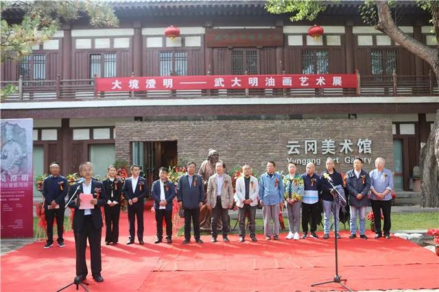 9月25日上午,由云冈研究院、山西大学美术学院、山西省美术家协会联合主办的“大境澄明——武大明油画艺术展”在云冈美术馆隆重开幕。出席开展仪式的有山西大学美术学院院长刘维东,省政府办公厅史志档案中心主任冯凌云,太原艺术博物馆执行馆长王亚中,海南师范大学美术学院教授周建宏,北京德滋画廊总经理白洪,大同市美术馆馆长高射,晋中学院美术系主任刘小旦,大同大学美术学院卢文勇、任小颖。云冈研究院副院长闫丁,文旅融合发展中心主任崔晓霞,文化遗产保护与监测中心主任卢继文及我院部分干部职工参加仪式。云冈研究院副院长何建国主持开展仪式。武大明先生向云冈研究院捐赠油画《云冈石窟十六窟》,闫丁副院长代表云冈研究院接受捐赠,同时向武大明先生颁发《收藏证书》。