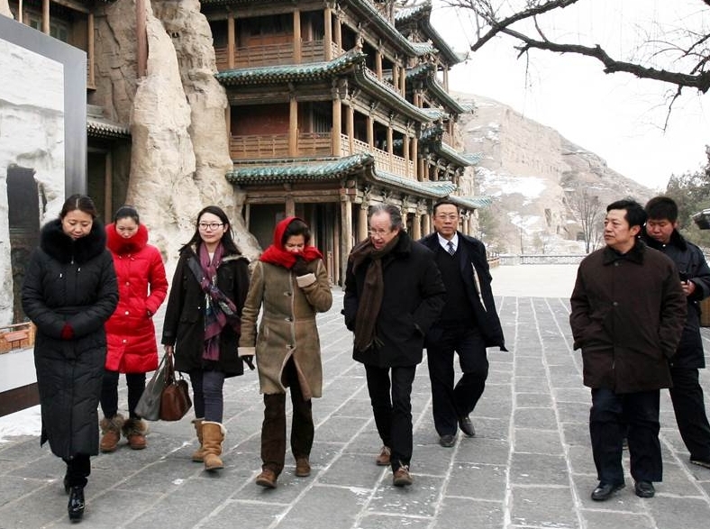 On January 23, 2013, Mr. Dai Haoshi, chief curator of French national heritage and former chief curator of Chinese Art Department of Jimei Asian Art Museum, visited Yungang Grottoes again. In 1973, Mr. Dai Haoshi accompanied French President Pompidou to visit Yungang Grottoes. Forty years later, he now revisited the site. When he saw that Yungang Grottoes had been fully restored and protected, he felt very happy and admired.