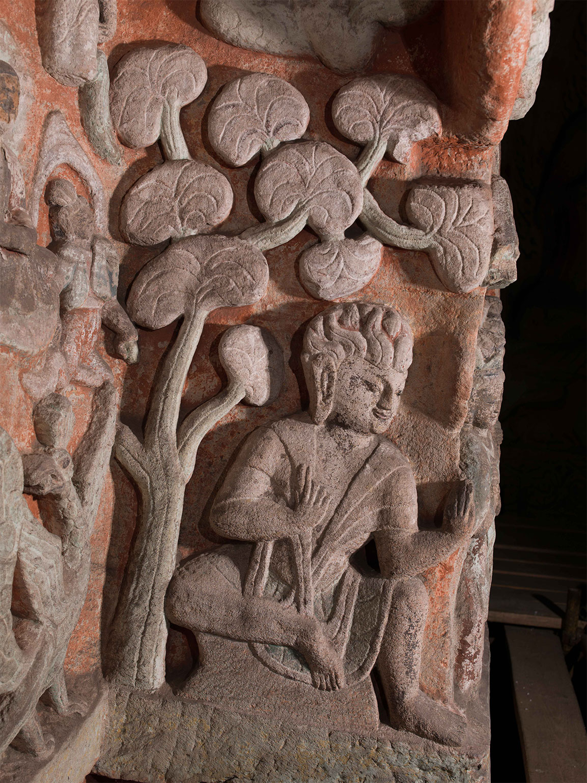 点击造像,如果和图片场景相对应,会显示出造像及典故介绍;