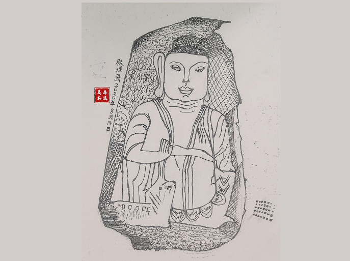佛像东输肇武周,皈依昙曜善筹谋。释迦弥勒昭云水,舞妓飞天奏管篌。