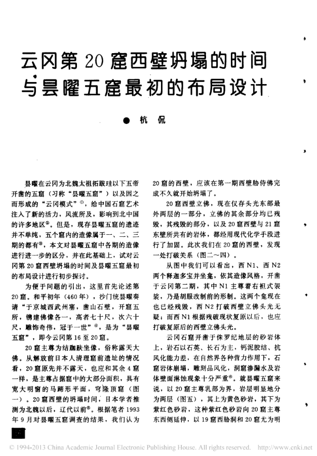 云冈第20窟西壁坍塌的时间与昙曜五窟最初的布局设计
