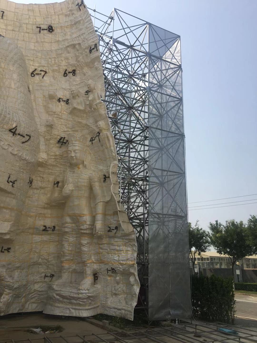 云冈石窟第18窟是云冈石窟规模最大、工艺最复杂、艺术价值极高的一窟,复制云冈石窟第18窟是极富挑战性的,为此云冈石窟研究院与北京建筑大学共同组建了包括建筑历史、建筑艺术、测绘、材料、结构、现代制造、监测监控等多学科交叉的协同创新团队,对云冈石窟第18窟实施1:1高精度模块化复制。
