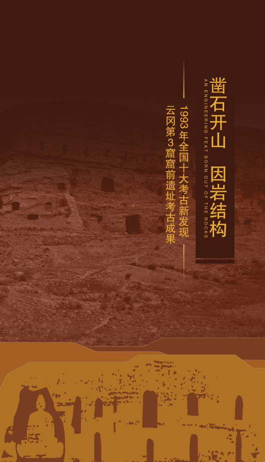 第一部分展览主要阐释云冈石窟1993、2011年两次“全国十大考古新发现”的学术内涵,由四个主题展览组成,分别为“凿石开山,因岩结构——云冈第3窟考古成果”“山堂水殿,烟寺相望——云冈窟顶建筑遗址考古成果”“真容巨壮,世法所希——昙曜与大像窟开凿”以及“隶楷之变,莫备于魏——平城与洛阳的魏碑”。