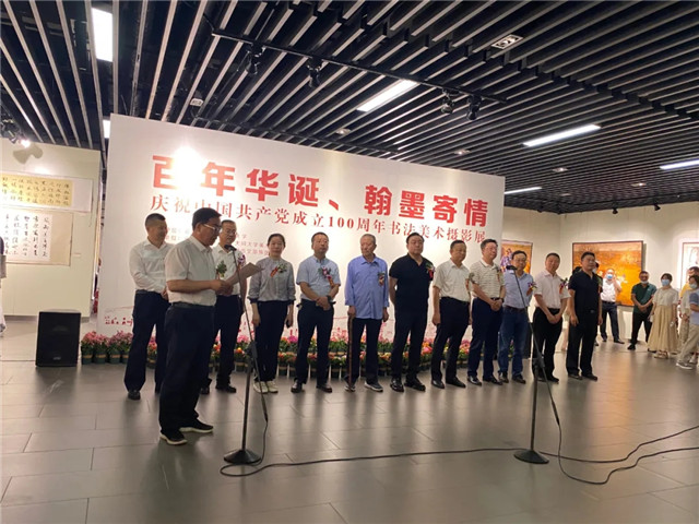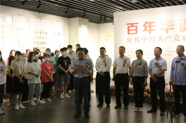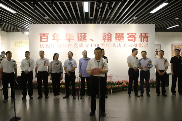 7月1日上午10时,由云冈研究院、大同大学主办的“百年华诞、翰墨寄情——庆祝中国共产党成立100周年书法美术摄影展”在我市东城墙和阳美术馆开展。云冈研究院党委书记张焯主持开展仪式。