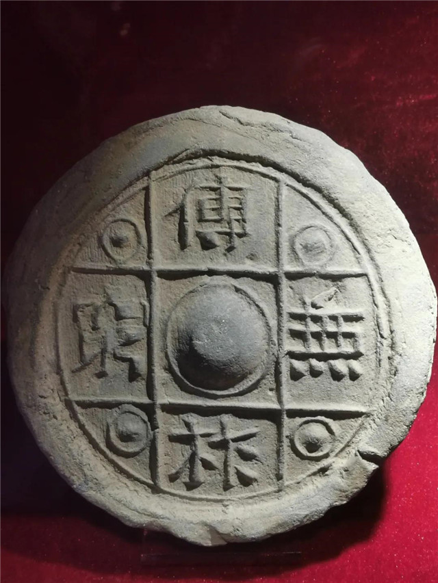 窟顶西区北魏寺院遗址位于第39窟至45窟上方,这是一座以塔为中心的塔院式寺院建筑遗迹。在发掘区南部有一座边长约14米的方形塔基,在塔基东、北、西三面均发现廊房遗址共20间,均为前廊后室。廊房有单间与套房,部分房间内有土炕、灶坑和烟道。在建筑群西南角还有两个窑址,其内尚存烧制扭曲的瓦当和板瓦。出土遗物以北魏时期的建筑材料为主,此外还有少量佛教石刻和日用器物残件。▲ 北魏“传祚无穷”瓦当,窟顶西区北魏佛教寺院遗址出土