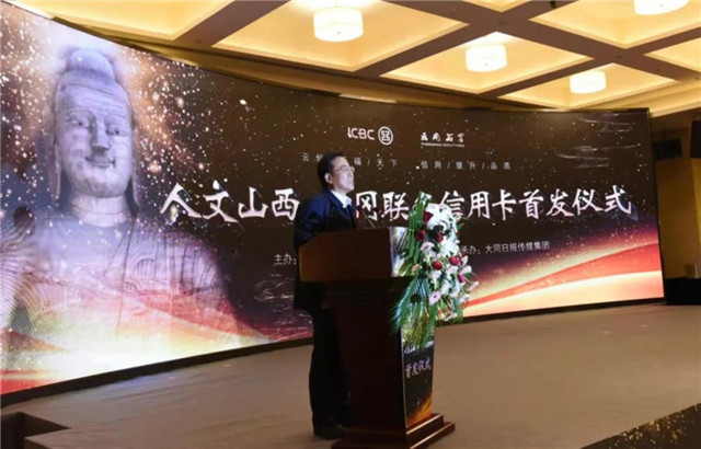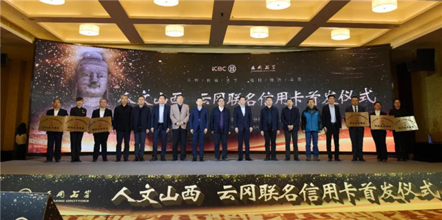 11月22日上午,由工行山西省分行携手云冈研究院推出“人文山西·云冈联名信用卡”在大同市举行首发仪式。这是目前我省唯一一款“美丽中国”地域名片信用卡,通过“金融+文旅”模式,以世界文化遗产云冈石窟为背景,融合大同文旅资源,让更多群众感受金融文旅的新型服务,为我省全方位推动高质量发展加油助力。云冈研究院党委书记张焯,云冈研究院规划财务部部长苑静虎参加了首发仪式。
