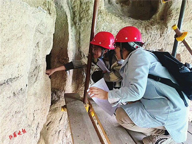 一时报名者众。4月30日,首批来自佛教考古、文物保护、敦煌学、佛教艺术等不同研究领域的5名专业人员,在云冈研究院考古研究与文物保护专家的陪同下,登上脚手架详细考察了第38-40窟。维护期间,共接待4批相关学科研究人员。“实地观察与看文献的感受大为不同,各窟龛的相对位置与关系,以及文物保护的难度,都在实践中更直观地被人感知。云冈研究院以开放的姿态迎接各地的求知者,尤为可贵。这次考察,会是我一个独特而难忘的起点。”学员之一戴恬评价。