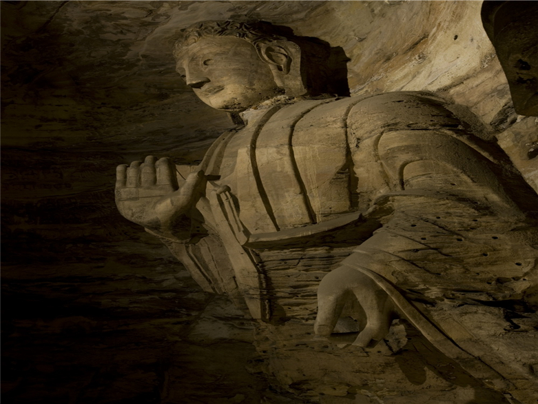 第十六~二十窟是云冈最早开凿的一组洞窟,因系著名高僧昙曜主持营建,故称“昙曜五窟”。窟制相同,平面呈马蹄形,穹窿顶,窟内造像以三世佛为主,主像雕饰奇伟,冠于一世,分别象征着北魏的五位皇帝。