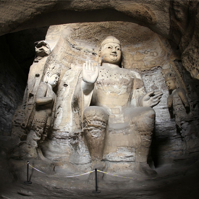 从北魏道武帝拓跋珪起,经历明元帝拓跋嗣、太武帝拓跋焘三帝66年东征西讨,先后降柔然、荡漠南、吞北燕、灭北凉,结束了十六国长期割据的历史,完成了统一北方的大业。随着“廓定四表,混一戎华”(《魏书》卷4《世祖纪下》),我国北方相对和平稳定时期的到来,向魏都平城大规模的移民和建设同时展开。从公元398年拓跋珪迁都平城,至494年魏孝文帝再迁都洛阳,平城作为北魏的首都和我国北方政治、经济和文化的中心,历96年之久。云冈石窟便是北魏王朝为宣传佛教教义而营建的宏伟工程。