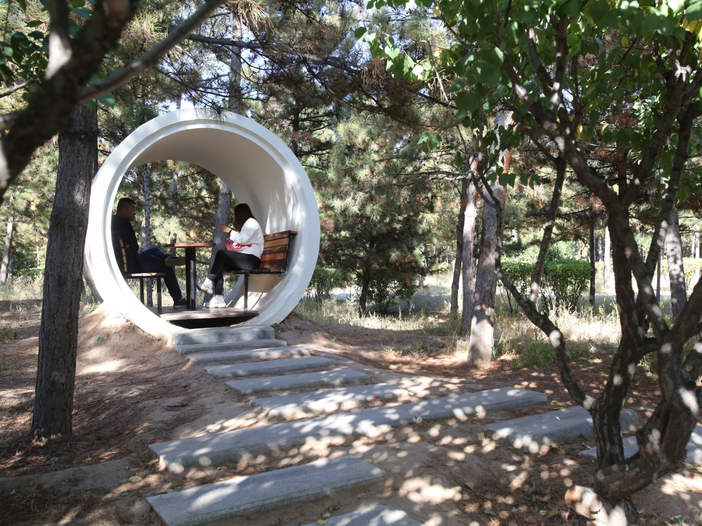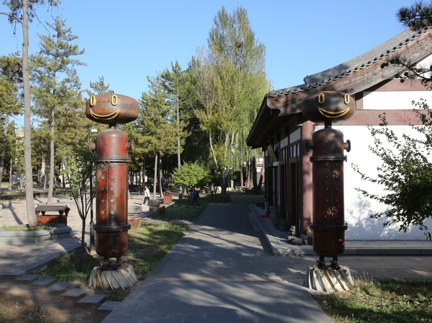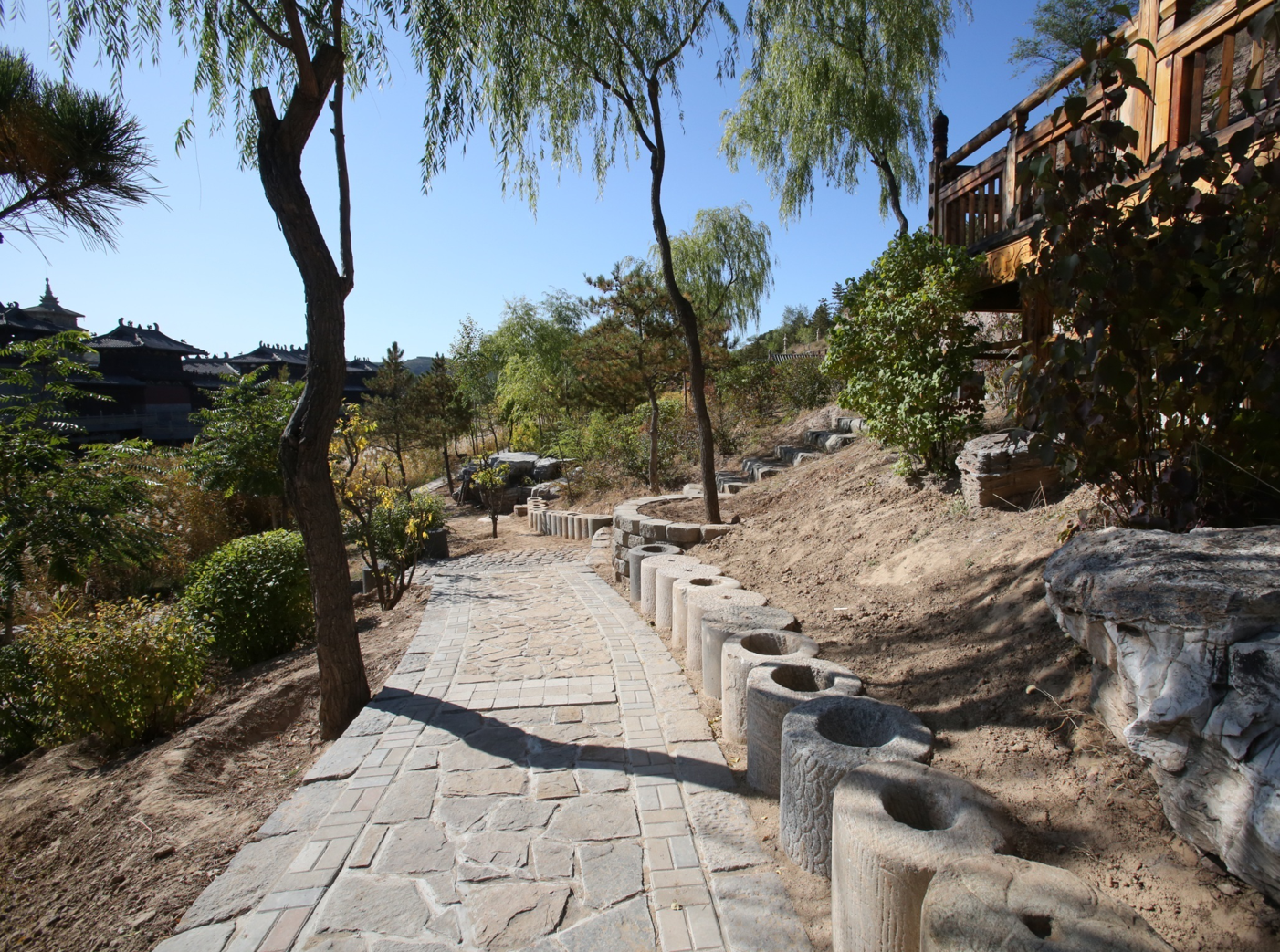 2008年,云冈石窟开展了大景区建设,对云冈石窟景区周边环境进行综合治理。政府搬迁了一镇六村,景区面积扩大10倍,达到2.5平方公里;旅游主体建筑完成后,政府工程即告结束。留给我们大量需要完善的工作。空旷的园区缺乏景观、道路,荒凉的建筑废墟需要整治,如何打造艺术景观,如何丰富文化内涵,成为我们必须回答的问题。最终,低碳环保、废物利用、水土保持成为我们不二的选择。