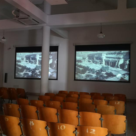 影视厅后厅内使用着由老电影院替换下来的座椅,虽然有些老旧,但在古朴的建筑风格和老式摄影机的映衬下,与环境相得益彰。影视厅内每天循环播放的是2001年申报世界文化遗产时拍摄的宣传片《云冈石窟》,时长约14分钟,主要介绍云冈石窟的开凿历史和各个时期洞窟的特点。