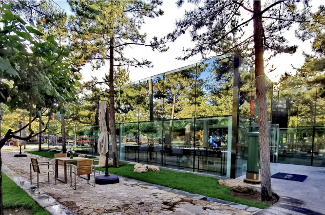 云冈礼物建设于云冈石窟景区内, 延续着文脉书房一直以来秉承的理念: 融入自然,还原自然。云冈礼物就地取材、建于山林,契合“持书树下,与佛同悟”的主题以及云冈石窟的文化内涵。云冈礼物经由台湾知名设计师朱志康先生缜密创意与设计后完美呈现,采用 540°全景采光设计,以及未使用一砖一瓦、一钉一木的超前搭建理念成就于世人,其创意感更与云冈石窟的古朴佛境与林木芳草完美融 合为一体。
