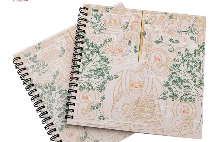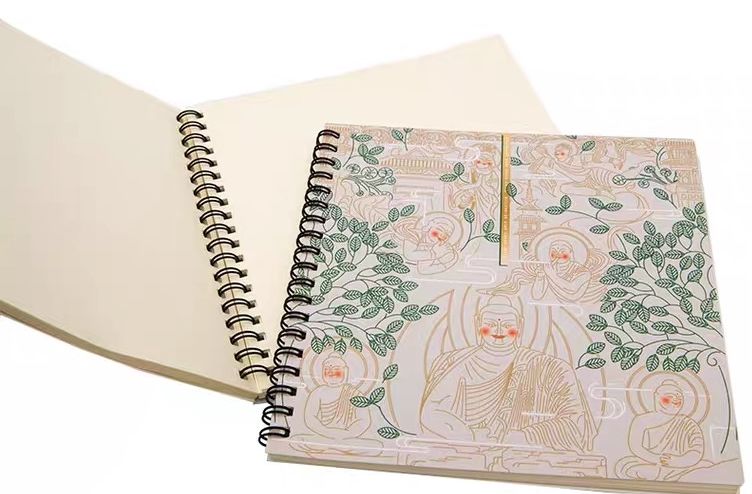 创意来源于气势磅礴的云冈石窟造像,嘴部轮廓清楚,嘴角处略带微笑,双耳垂肩,双手做禅定状,会心一笑线圈笔记本色彩搭配和谐明亮,线圈结构,可360度翻转,便于书写。造型端庄凝重,寓意千年风霜,终可归于会心一笑。