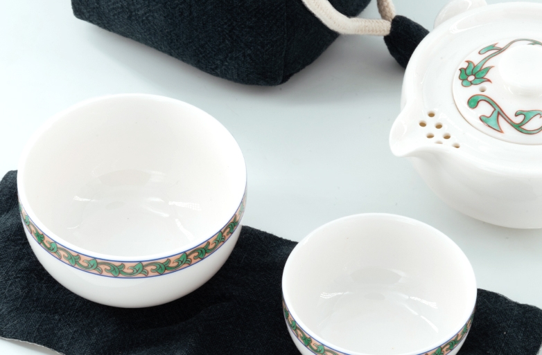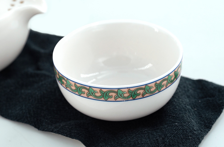 茶盖上的化生莲花图案以及杯沿忍冬纹饰,都是来自北魏云冈石窟雕刻中的元素,由著名画家梁力强先生专绘。