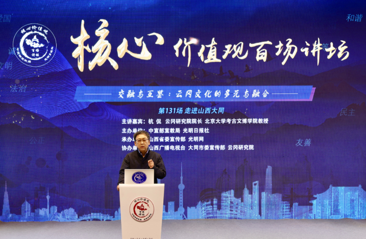 由中宣部宣教局、光明日报社共同主办的“核心价值观百场讲坛”第131场活动10月8日在山西大同开讲。云冈研究院院长、北京大学考古文博学院教授杭侃作题为《交...