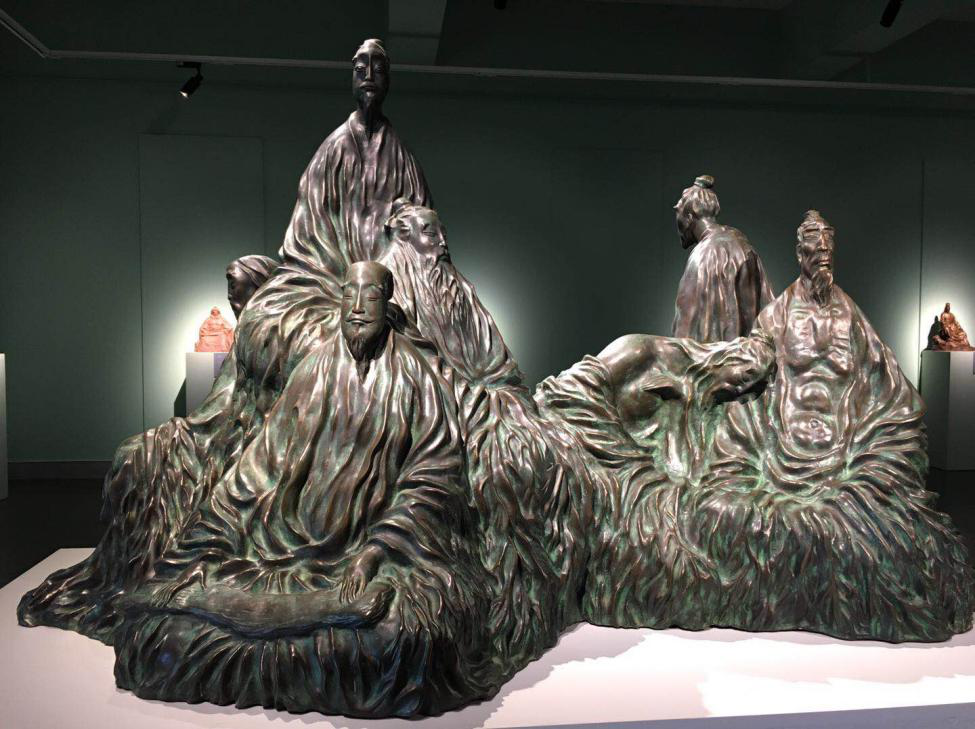 "Seven Sages in the bamboo grove" is made of copper, which was created in 2000.