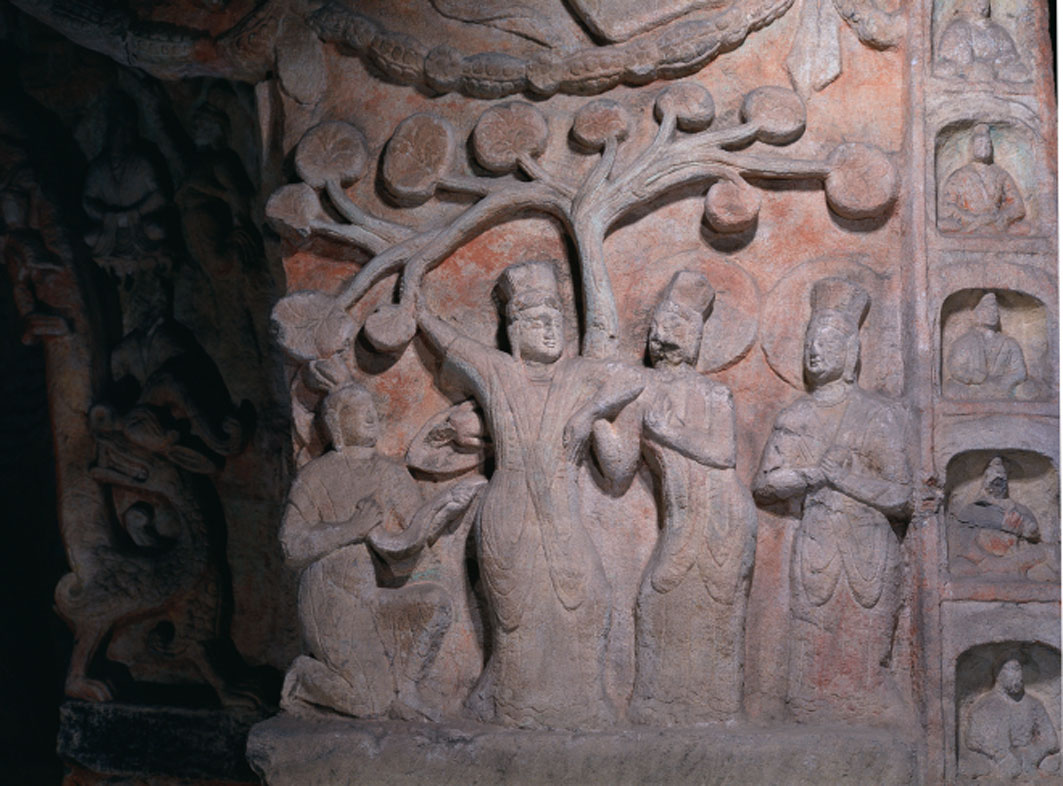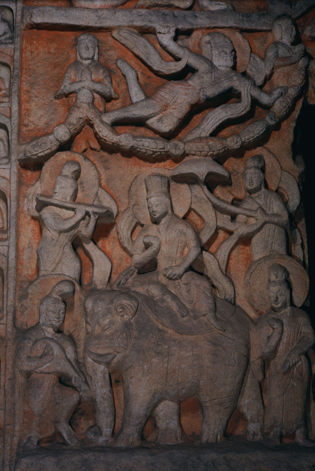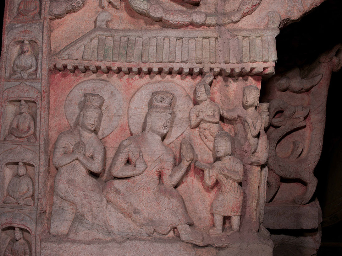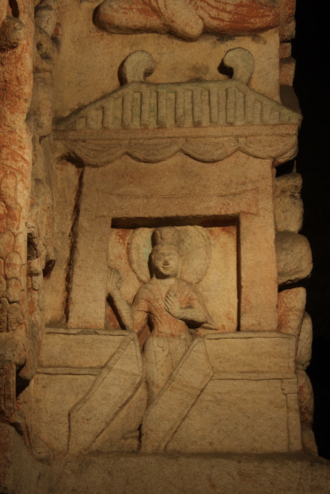 点击造像,如果和图片场景相对应,会显示出造像及典故介绍;