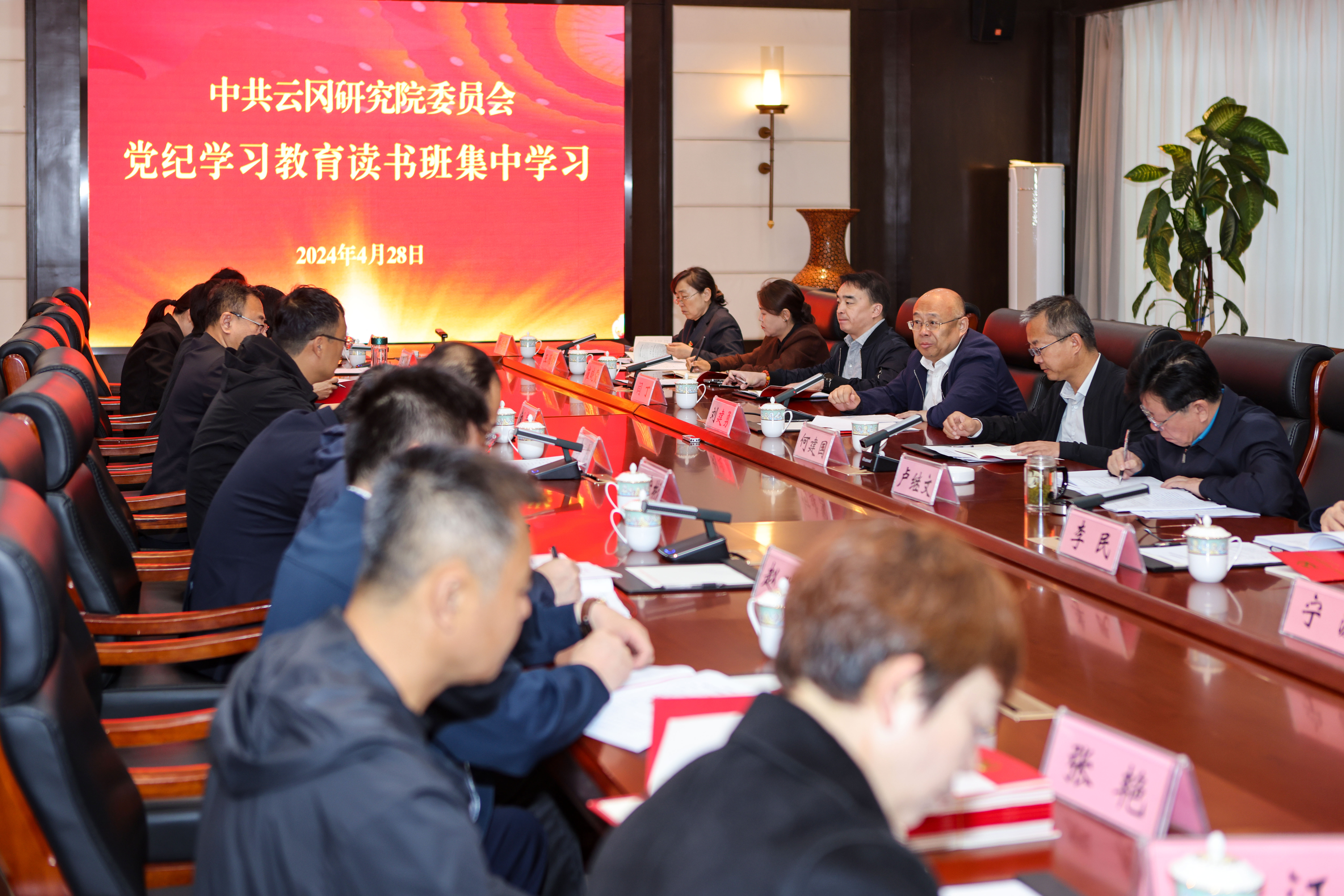 4月28日,云冈研究院党委理论学习中心组(扩大)党纪学习教育读书班开班,深入学习了《中国共产党纪律处分条例》。院领导班子成员,副处级以上干部、各党支部书记、院党委党纪学习教育工作专...