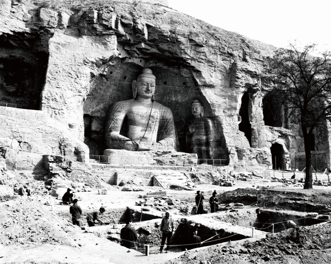 为配合窟前降低硬化地面工程,由专门的考古队伍进行了考古发掘。通过历时两年的考古发掘工作,发现大量的遗物和遗迹,遗物中有北魏、唐、辽、金及其他时期的石雕造像、虎头门墩、龙头、狮子、石磨盘、石盖、钱币、瓦当、生活用品和各种建筑构件600余件。遗迹中有北魏及辽金时期的河坝、供佛台基等。这次考古发掘,不仅对了解云冈石窟的历史地貌、开凿程序和技术提供了实物资料,而且弥补了历史文献的不足,同时又极大地丰富了云冈石窟及其周围文物的历史内涵。国内著名的文物专家、学者均给予了充分的肯定,认为这次考古发掘成绩显著、意义重大。为此,云冈石窟窟前考古发掘被评为“‘93’全国十大考古新发现”之一。之后,遗物遗迹经测绘、摄影、文字记录之后,遗物妥善研究保管,遗迹掩埋,并在硬化的地面条石上,作原址原样大小的标记。