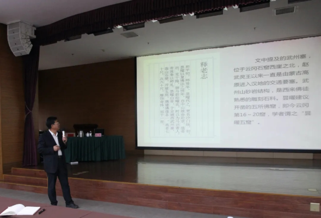 张焯院长从佛教东传的波浪式轨迹、云冈石窟开凿的历史因缘、东方佛教艺术的旷世绝唱、平城时代对中国佛教的重大贡献四个层面,详细讲述了佛教艺术如何东传来到中国、扎根平城,最终影响到整个中国的历史进程。张院长指出,云冈石窟的诞生是诸多历史必然性的归结,它作为皇家工程,成为引领和推动北朝石窟佛寺建设高潮的样板。同时,由于云冈石窟的艺术源流丰富,至今仍受到世界上众多学者的关注,各种研究成果不断涌现,尤其是2019年云冈石窟研究院与青岛出版集团合作出版的大型二十卷本《云冈石窟全集》的出版,不仅达到了云冈石窟研究的新高度,更为构建“云冈学”打下了坚实基础。