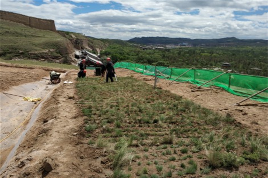 该工程主要是通过窟顶铺设防水层和排水渠等措施解决第14窟渗水问题,通过粘接和除盐等措施解决窟内多种病害问题。