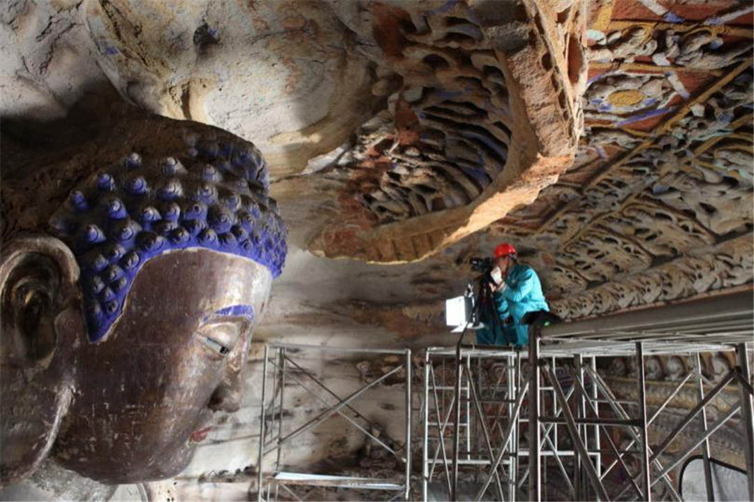 ▲云冈石窟第9窟数字化采集现场