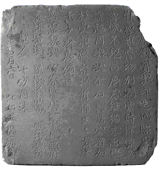 □□[夫光]灵镜觉,凝寂迭代。照周群﹖」邦,感垂应物。利润当时,泽潭机」季。慨不邀昌辰,庆钟播末;思恋」灵福同,拟状金石。冀瞻容者加」极虔,想像者增忻悕。生生资津,」十方齐庆。颂曰:」灵虑巍凝,悟岩鉴觉。寂绝照周,」蠢趣澄浊。随像拟仪,瞻资懿渥。」生生邀益,十方同沐。」□[景]明四年四月六日,比丘尼昙媚造。