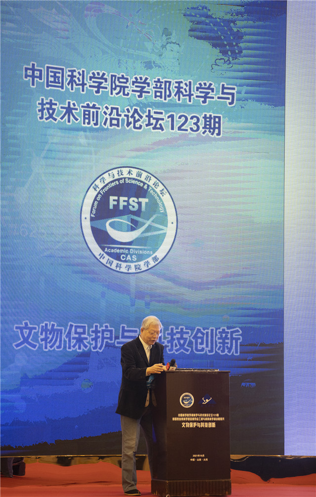 10月12日,中国科学院学部科学与技术前沿论坛123期暨国家自然科学基金委员会工程与材料科学部战略研究—“文物保护与科技创新”在山西大同召开。中国科学院成会明院士担任论坛执行主席,十多位中国科学院院士和诸多长期工作在文物保护领域的领导与专家齐聚一堂,围绕文物保护科技创新这一主题深入交流、分享经验、探求新路,为我国文物保护领域的蓬勃发展助力。以此次论坛为契机,由省科技厅授予云冈研究院的“石窟寺保护与传承山西省重点实验室”举行揭牌仪式,中国科学院技术科学部主任杨卫、国家自然科学基金委员会副主任高福、山西省委宣传部副部长张峻、大同市市长张强、山西省文物局局长刘润民、山西省科技厅副厅长牛青山共同为重点实验室揭牌。