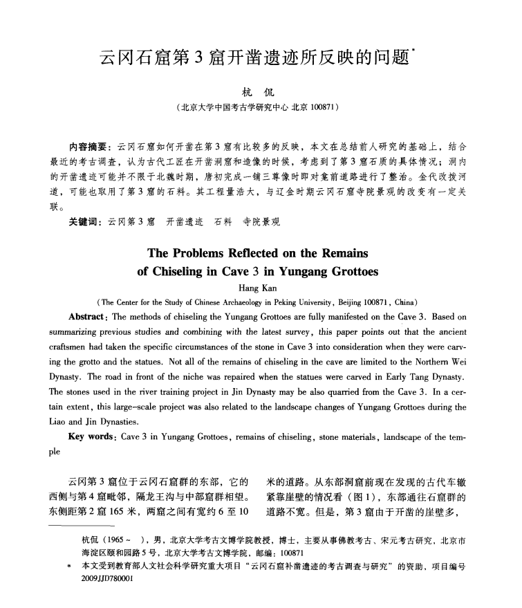 云冈石窟第3窟开凿遗迹所反映的问题